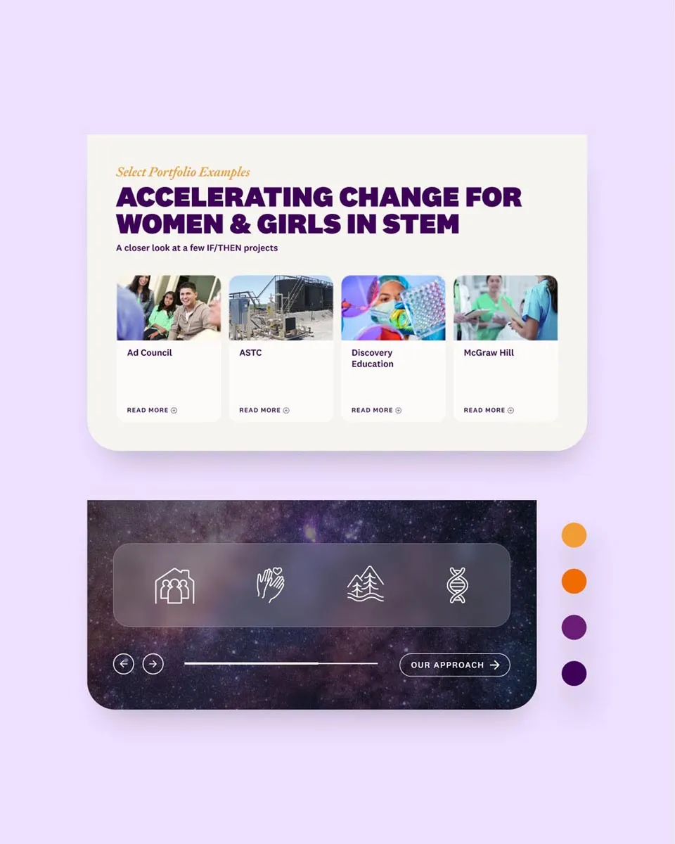 We built a digital platform for IF/THEN that inspires by uniting storytelling, strong visuals, and mission-driven design to empower girls in STEM.